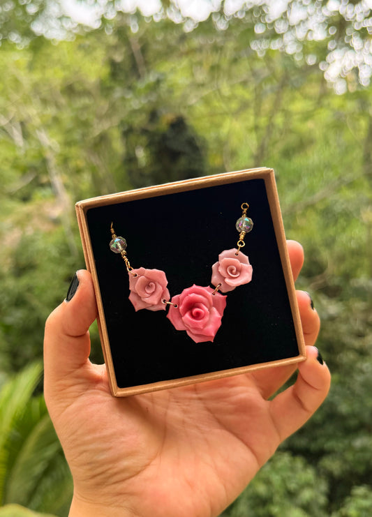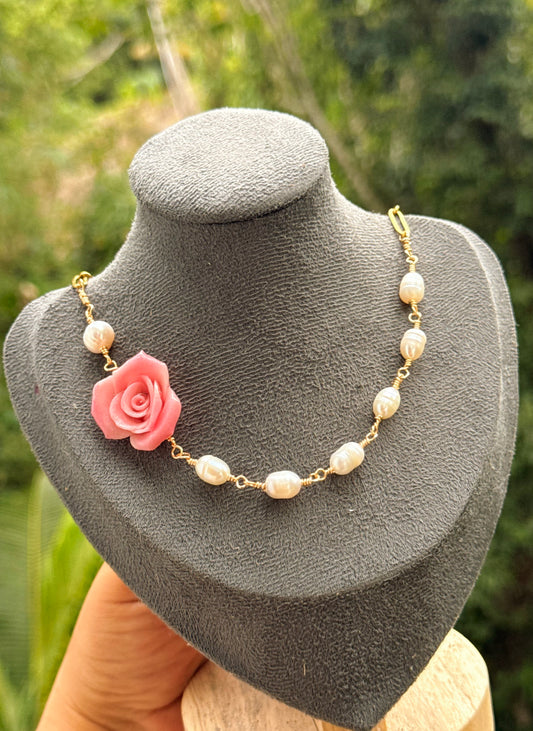 Cadena de pétalos de flamboyan rojo y pinto con perlas