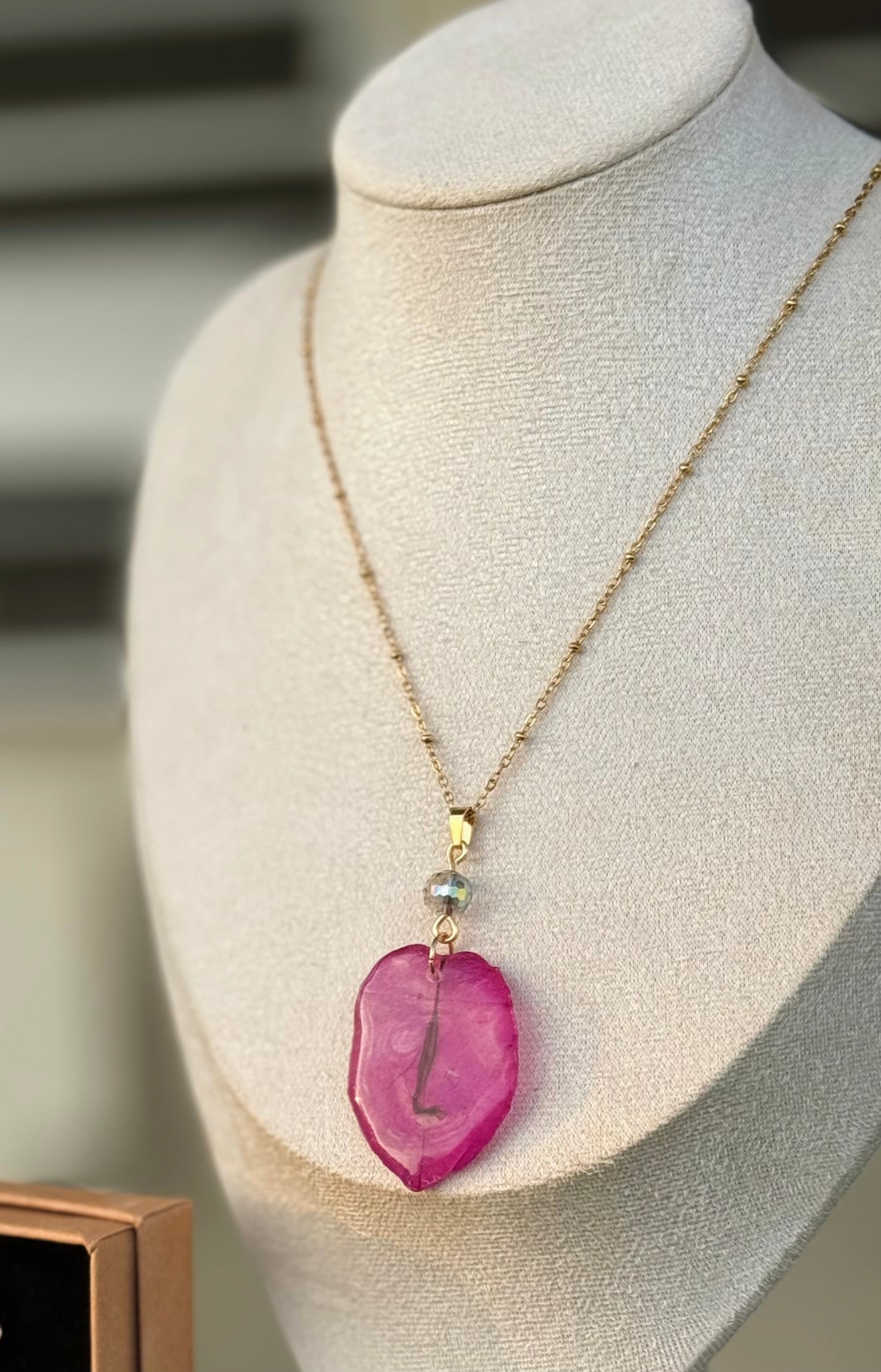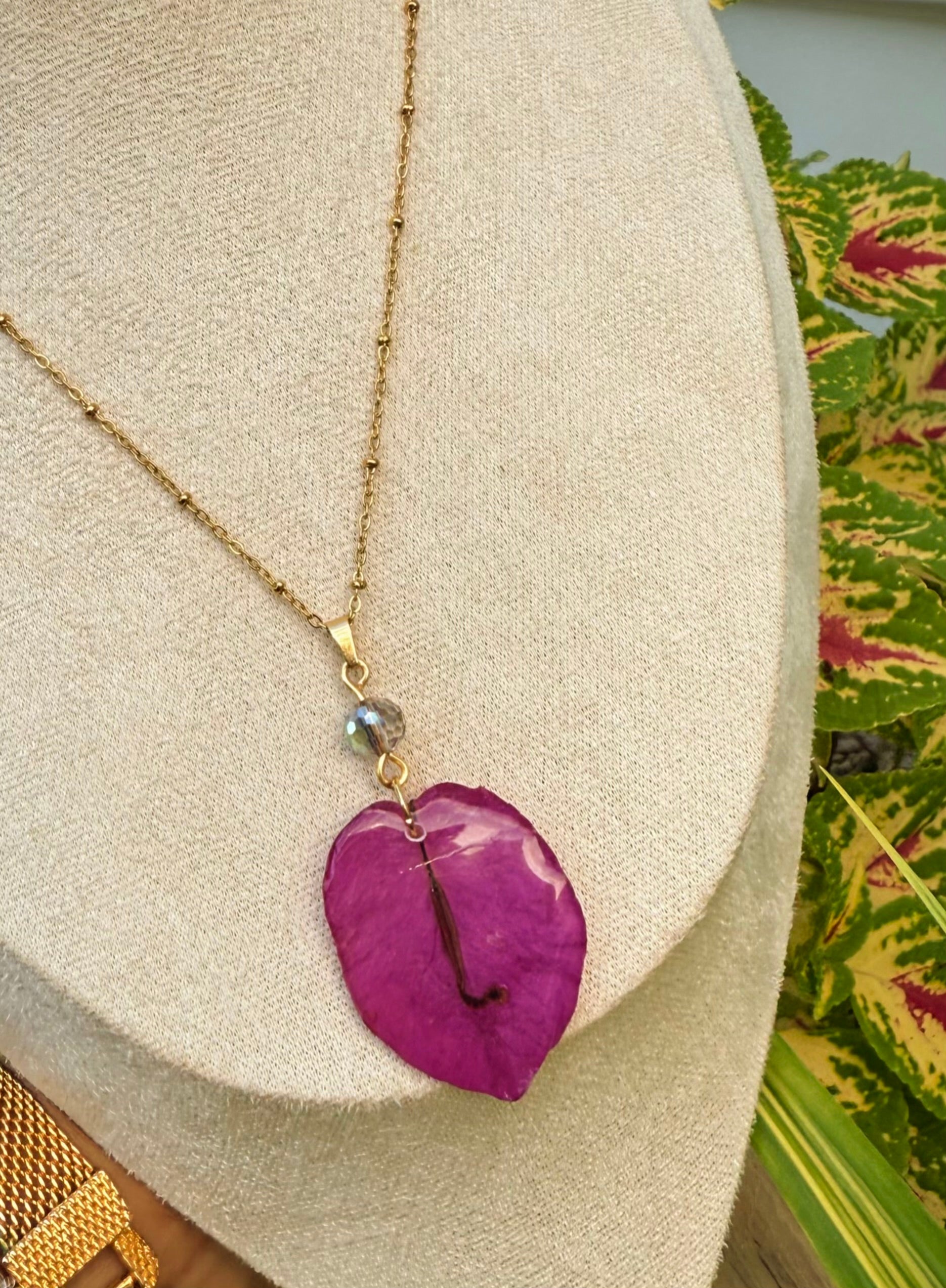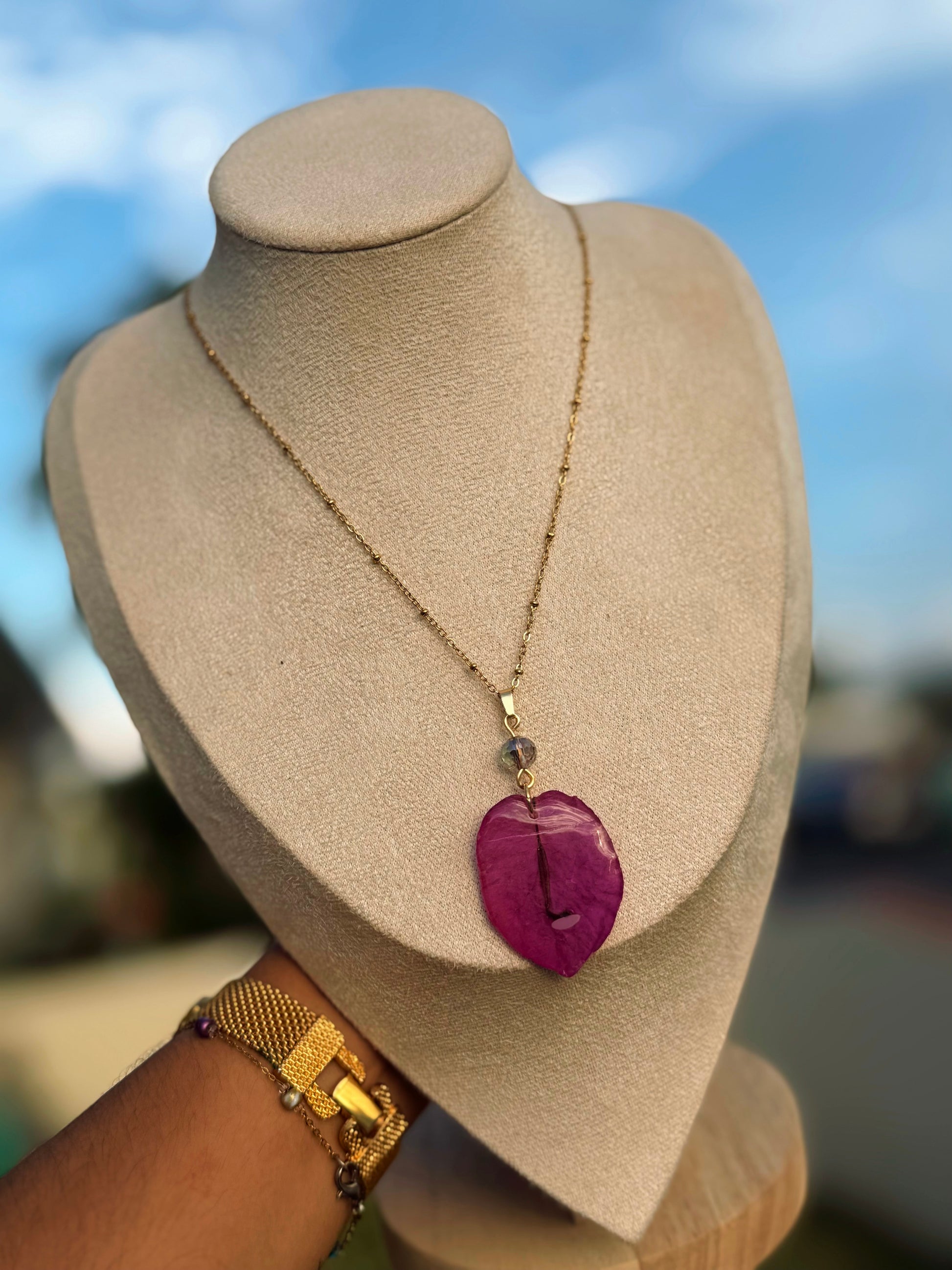 Cadena con charm de trinitaria real del faro punta de Higuera en Rincón Puerto Rico, cristal con efecto aurora borealis alambrado a mano, cadena de acero inoxidable.