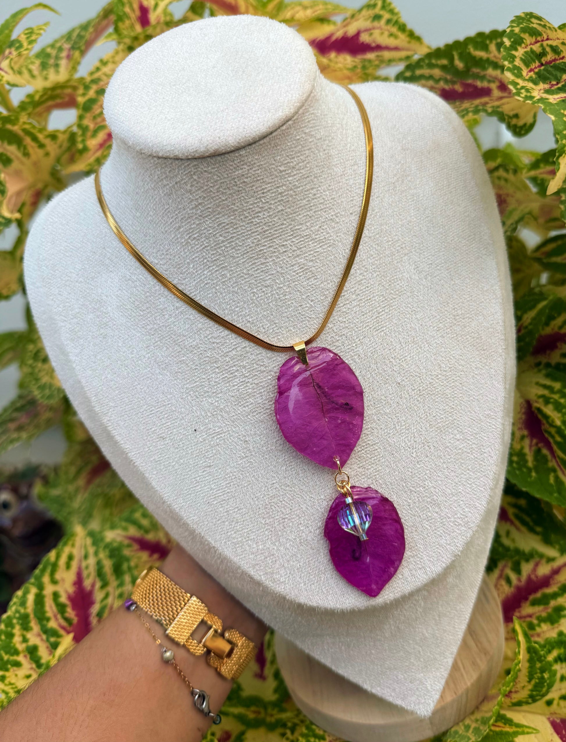 Cadena con charms de trinitaria real del faro punta de Higuera en Rincón Puerto Rico, cristal con efecto aurora borealis alambrado a mano, cadena de acero inoxidable.