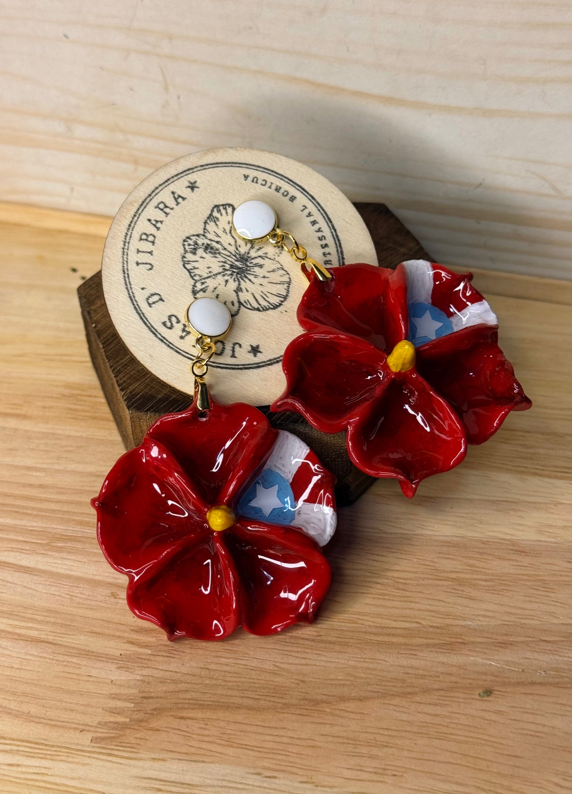 Pantallas artesanales realizadas con flores en porcelana fría, pintadas en acrílico y selladas con resina para darle un acabado brilloso y duradero al trabajo de pintura, tamaño aproximado de los dijes es de 1” 1/2- a 2” pulgadas aproximadamente, ganchos y hoops de acero inoxidable