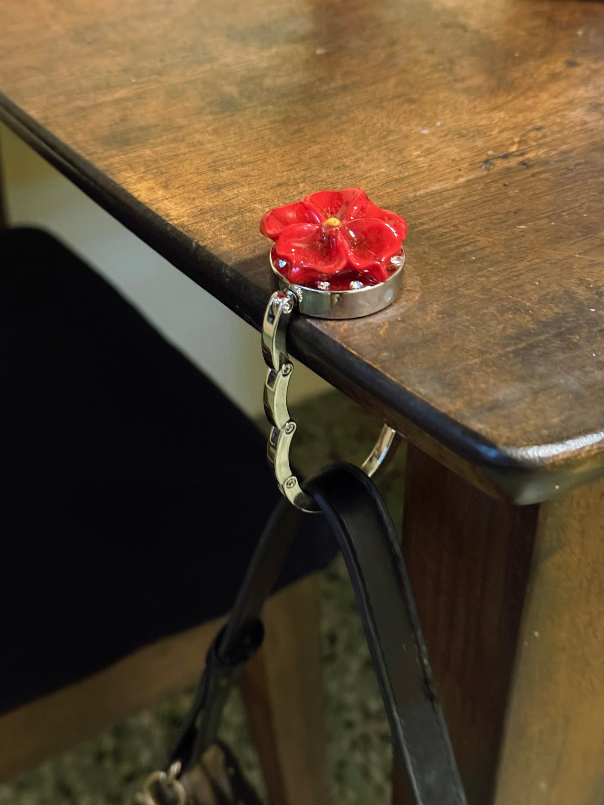 Gancho para colgar tu bolso/ cartera con charm hecho en porcelana fría, pintado a mano en acrílico y sellado en resina, el gancho con cierre magnético, ligero y lo suficientemente resistente como para soportar hasta (6.6 lb).