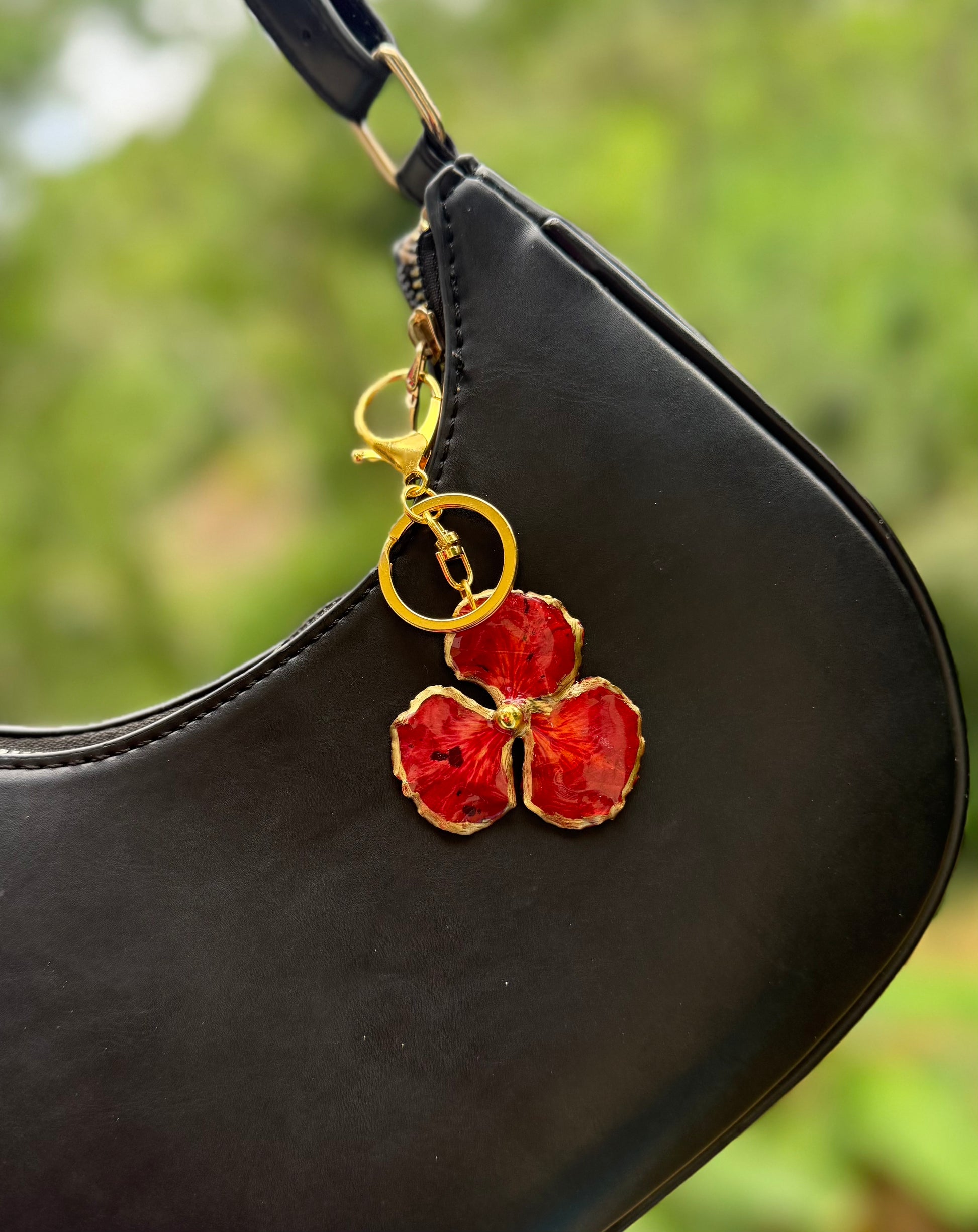 Charm creado con pétalos reales de flamboyan de Puerto Rico.