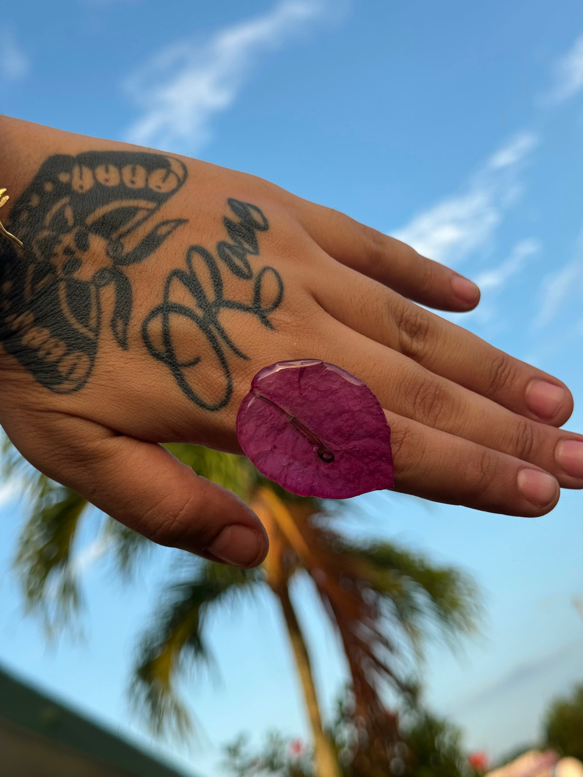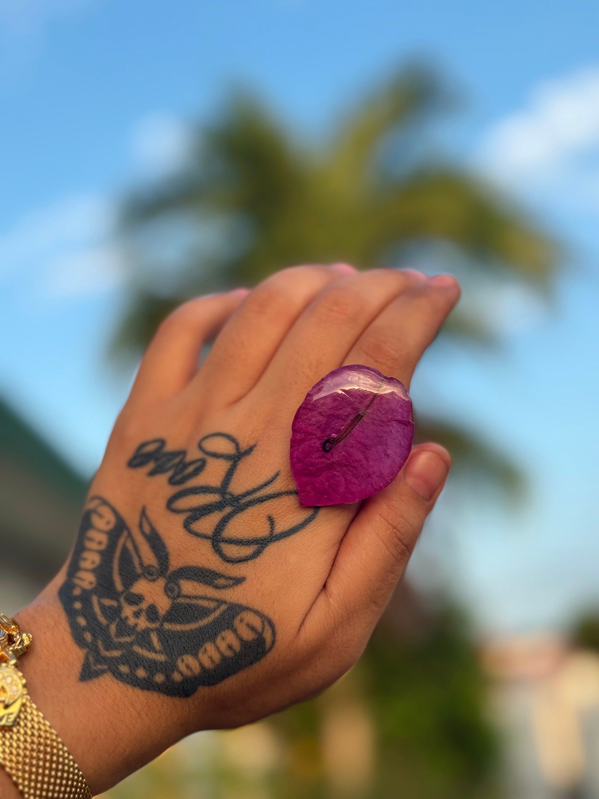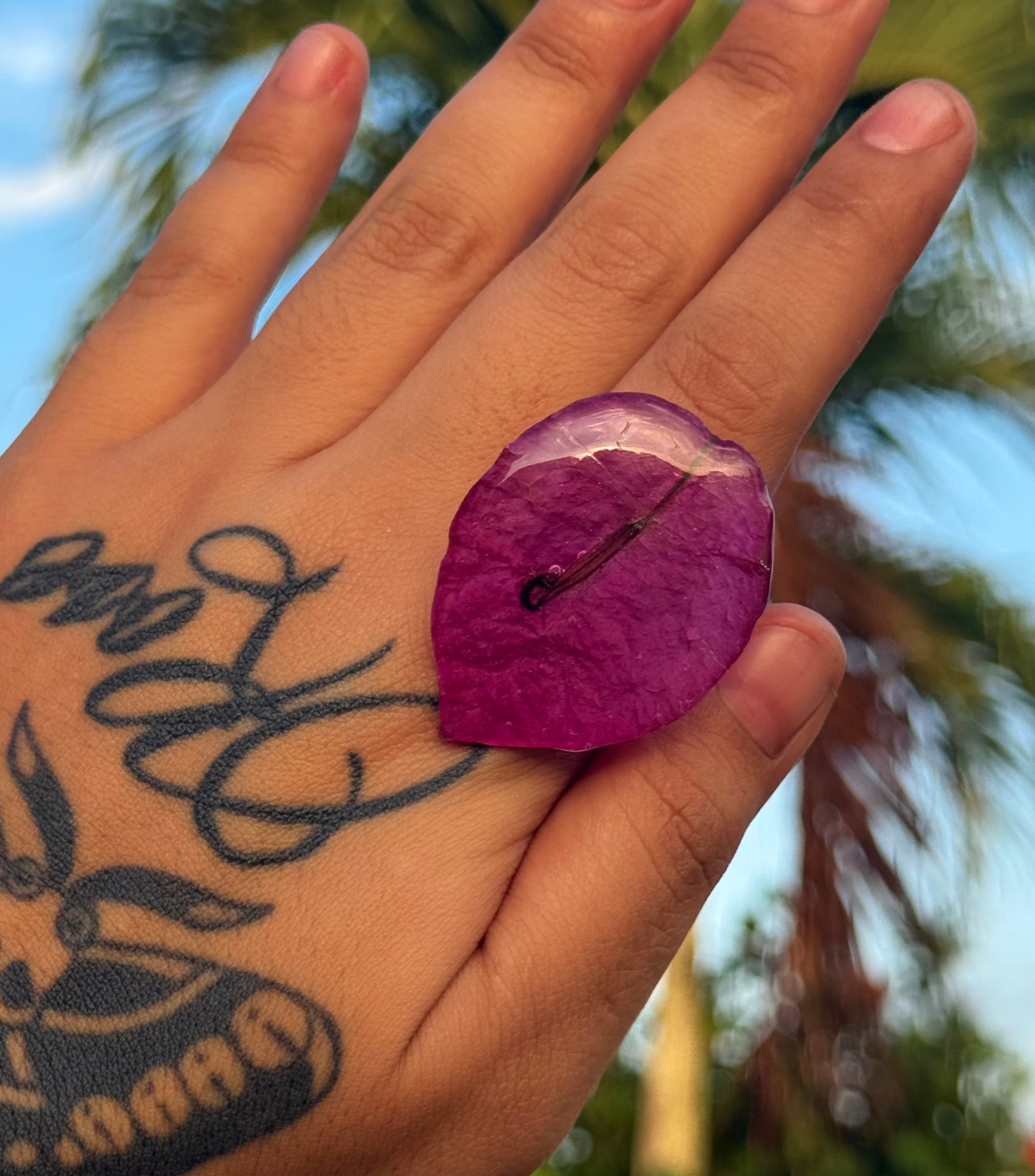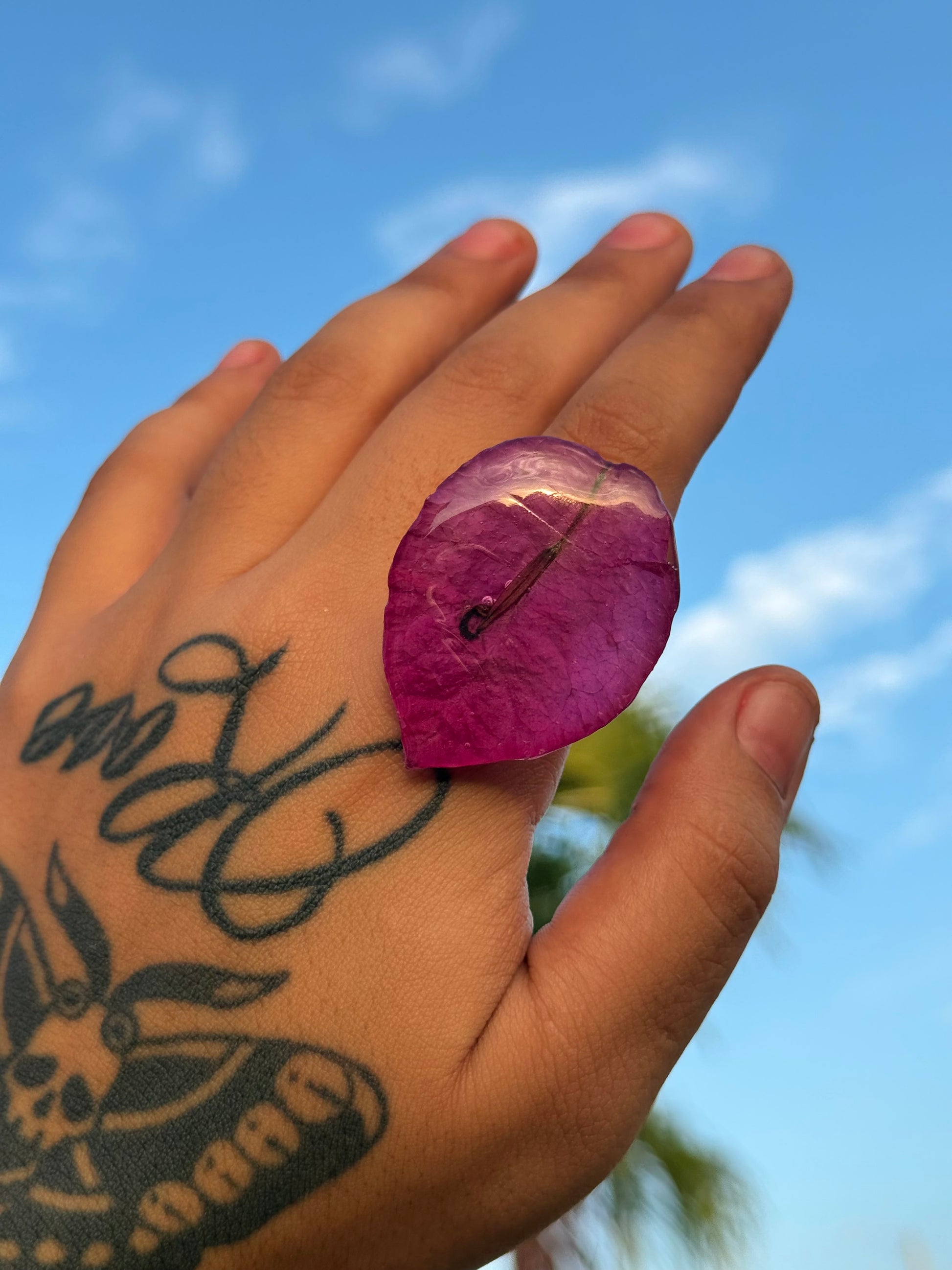 Sortija artesanal realizada con pétalos reales del faro punta de higüeras de Rincón Puerto Rico.